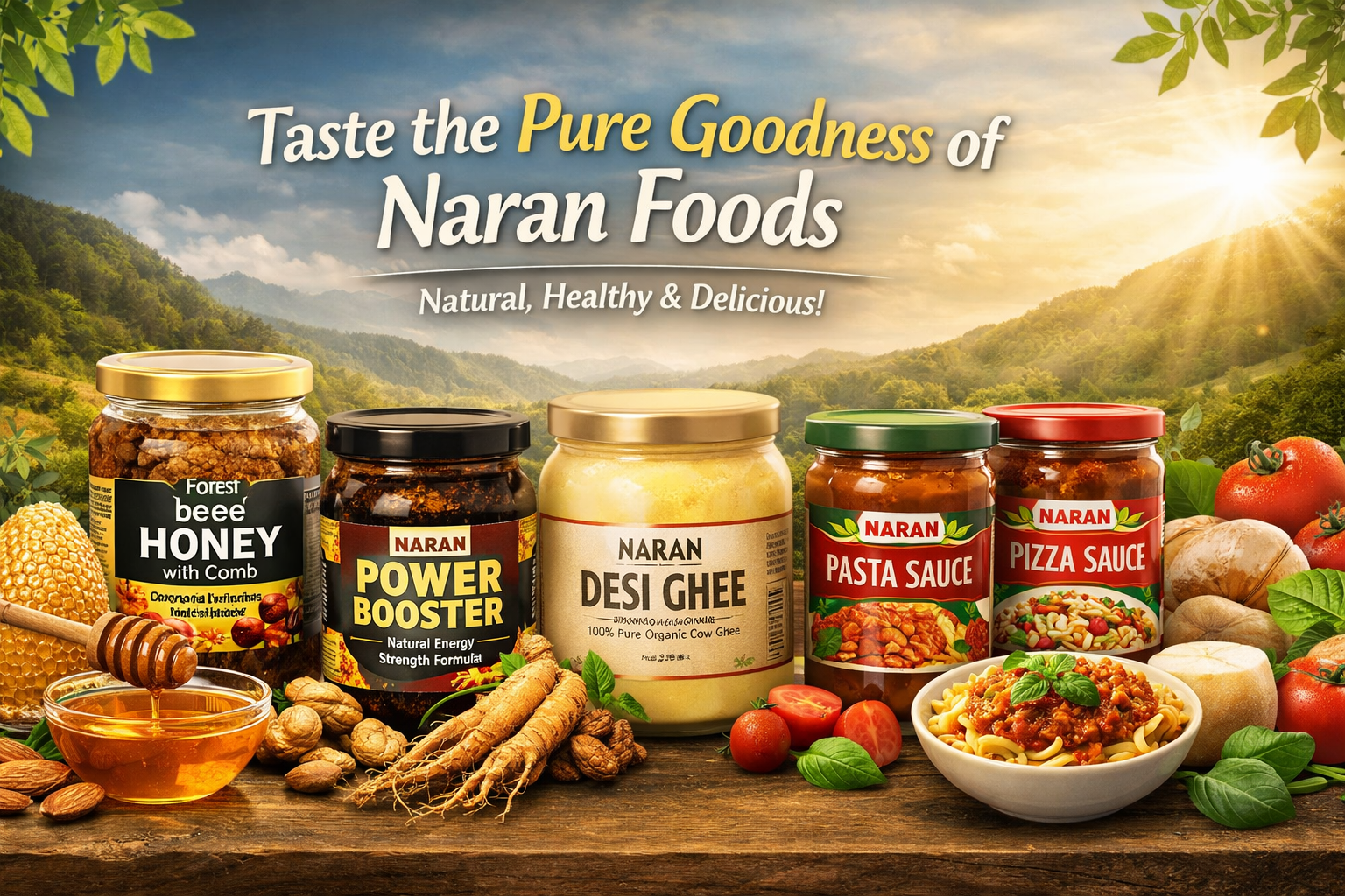 All products of Naran Foods are pure. We commit 100% natural honey, premium ghee, authentic sauces, and energy blends to our customers — duly tested, hygienically packed, and quality-assured.Experience the perfect combination of rich honey, wholesome ghee, flavorful sauces, and nutritious energy boosters.